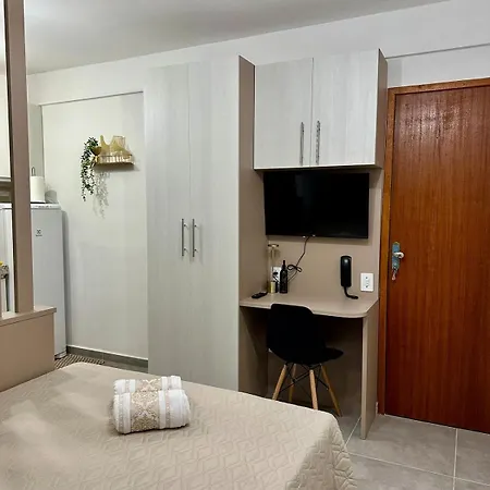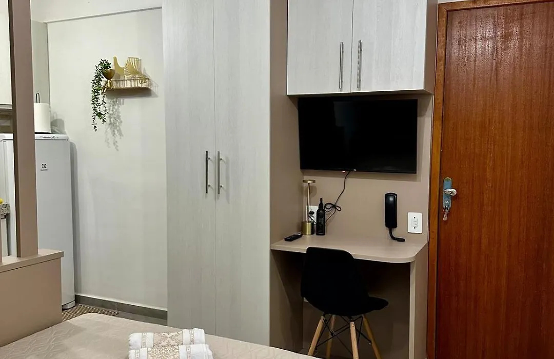 Among the self-catering amenities provided is a kitchen with a refrigerator and glassware. Apartamento 1 Quarto Em Sj Proximo A Rodoviaria is within a few blocks of Rodoviaria Prefeito Octavio de Almeida Neves bus station.